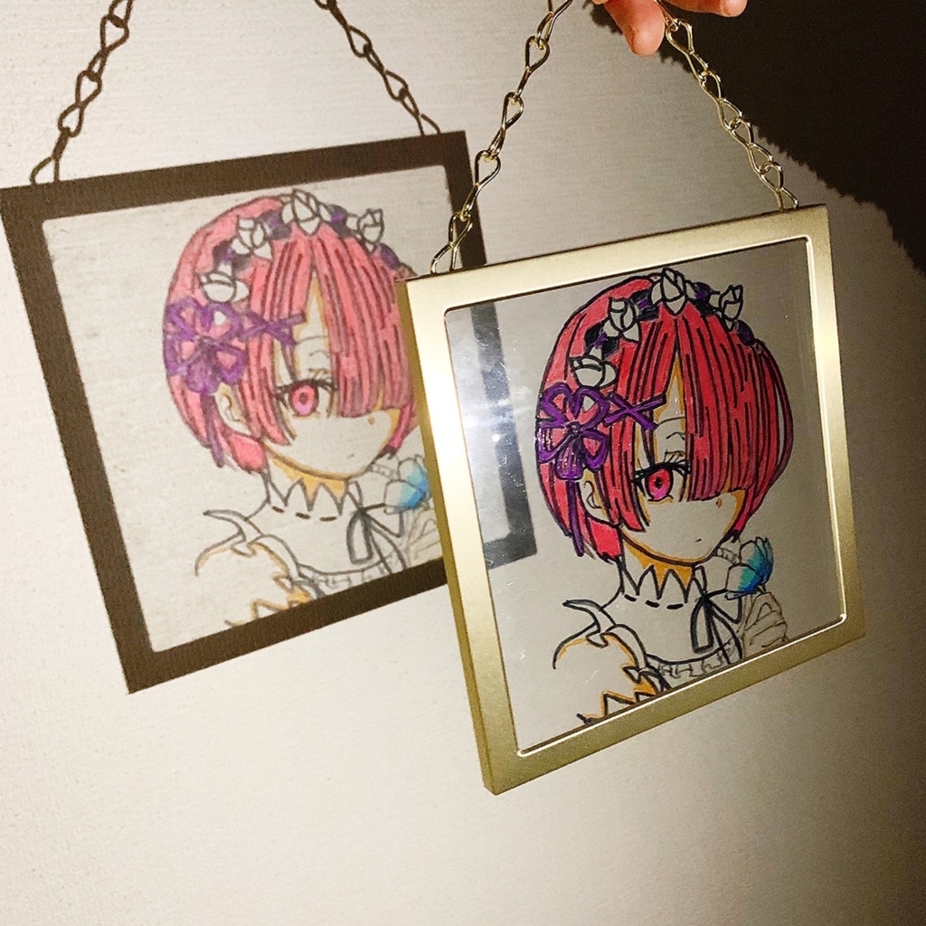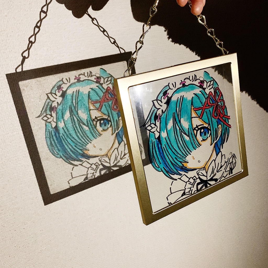 フォトフレーム(ガラス)に直で描く事によって、お部屋に飾るインテリアにもなる【ガラスアート】です。