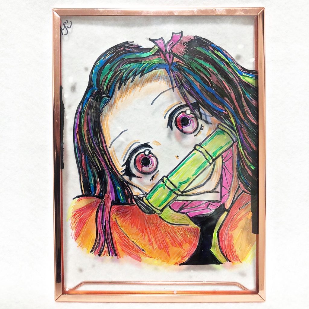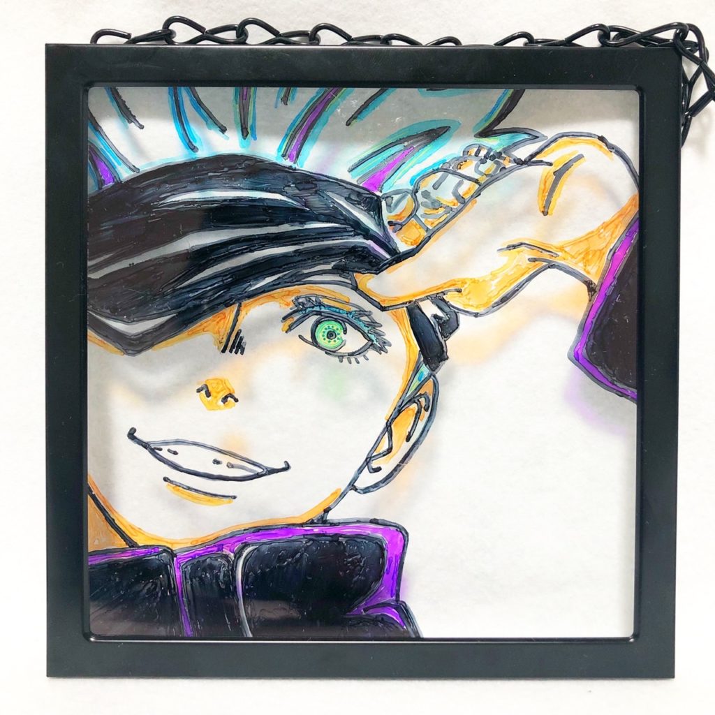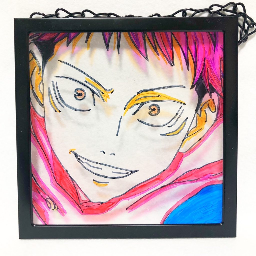 ガラスに描いています。光を当てると映し出されます★似顔絵などでも描く事が出来ます!今回は呪術廻戦の主人公です! フォトフレーム(ガラス)にマッキーで描きました... -