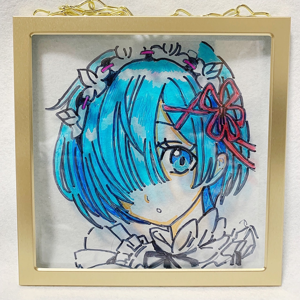 【可愛すぎるレムのイラスト】 超かわいいレムになりました(>_<)光を当てると一段とかわいいです‼ フォトフレーム(ガラス)にマッキーで描きました。 マッキー(油... -